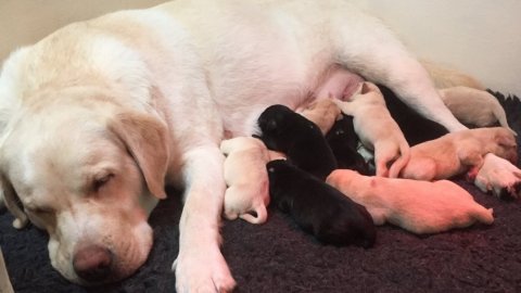 Vores næste kuld venter vi i februar 2026. Vi får sorte og gule hvalpe.